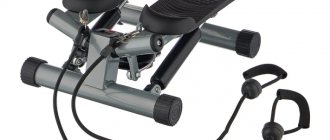 Pros of steppers: effective for weight loss, not very expensive, compact in size, you can choose the desired level of load, helps cope with cellulite. Disadvantages: the upper body practically does not turn on during training, the stepper is not suitable for people weighing more than 100 kg, it puts a lot of stress on the joints.
