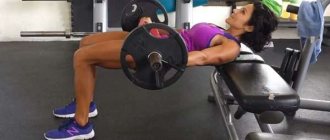 Enlargement of the buttocks is impossible without weighted squats. For these purposes, you definitely need a barbell. The technique is the same as classic squats, only using a barbell. When thinking about how to remove the crease above your butt and how to pump up the gluteus medius muscle, be sure to add these squats to your set of exercises.