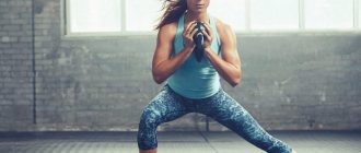 - When exercising with dumbbells, they work with lighter weights, but it is possible to choose a variation of the exercise that will relieve the load on the lower back and legs.