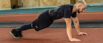 В этом варианте упражнения тело должно находиться в такой же позе, как при классических отжиманиях с некоторыми особенностями: